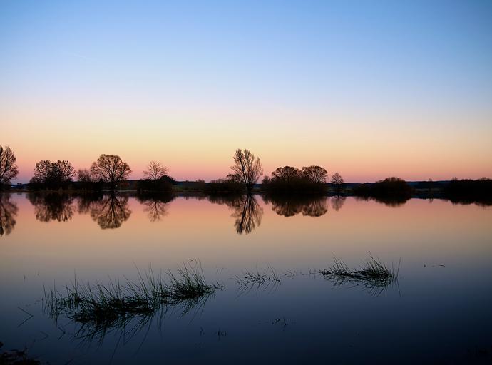 Keywords: evening tree silhouette background atmosphere mood lights romantic twilight blue hour water sunset