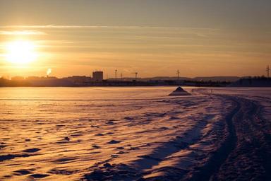 Keywords: evening winter sunset purple sky white cold december january seasonal scene outdoor snow