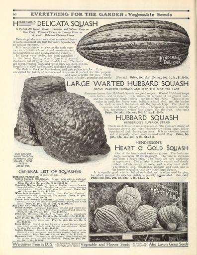 | Keywords: Everything for the garden (15768433504).jpg 60 <br> EVERYTHING FO <br> H <br> ENDERSON'S <br> DELICATA SQUASH <br> A Perfect All Season Squash Summer and Winter Crop on <br> One Plant Produces Fifteen to Twenty Fruits to <br> A Vine Delicious Chestnut Flavor <br> Delicata produces an enormous number of fruits <br> of such convenient size that the entire Squash can <br> be used at one time <br> It is ready almost as soon as the early sum- <br> mer sorts is better flavored and remains in per- <br> fect condition as long as any keeping variety <br> Its flavor when cooked has been compared <br> to the Sweet Potato others liken it to roasted <br> chestnuts but all agree that it is delicious The fruits <br> are about 9 inches long and when ripe are deep yellow <br> irregularly striped and marbled with dark olive green <br> The flesh is thick of fine texture and pale yellow in color It is <br> unexcelled for baking ” the shape and size make it perfect for this purpose <br> and none is better for pies When <br> Diled it is dry granular and mealy <br> OUR LEAFLET <br> HOW TO GROW <br> PUMPKINS AND <br> SQUASH SENT <br> FREE IF <br> ASKED FOR <br> GENERAL LIST OF SQUASHES <br> 1 oz for 50 hills <br> SUMMER VARIETIES <br> Golden Custard Henderson's A very large golden scalloped <br> bush Squash wonderfully productive and of extra quality <br> Price 10c pkt 15c oz 35c li lb 1 10 lb <br> Vegetable Marrow Bush A favorite English variety bearing <br> long dull yellow fruits The flesh is extremely tender marrowy <br> and delicious Should be used before fully grown Price 10c <br> pkt 15c oz 40c U lb 1 25 lb <br> White Bush Scalloped The white Patty Pan or Cymling ; <br> creamy-white skin; fine quality free cropper Price 5c pkt <br> 10c oz 30c M lb 90c lb <br> Yellow Bush Summer Crookneck A bush variety early and <br> prolific; surface deep yellow densely warted; quality and flavor <br> good Price 5c pkt 10c oz 30c M lb 90c lb <br> AUTUMN AND WINTER VARIETIES <br> Boston Marrow A popular Squash for autumn and winter use; <br> skin thin reddish-yellow; flesh dry fine grained and delicious <br> Price 5c pkt 10c oz 30c J 4 lb 1 00 lb <br> Delicious Resembles Hubbard in shape and is remarkably <br> good in flavor Price 10c pkt 15c oz 40c \i lb 1 25 lb <br> Early Prolific Marrow A very popular second early Squash for <br> autumn and early winter use Price 5c pkt 10c oz 30c i' <br> lb 1 00 lb <br> Essex Hybrid One of the best for winter; a good keeper of good <br> size bright orange; flesh thick dry and most delicious Price <br> 5c pkt 15c oz 35c M lb 1 10 lb <br> Golden Hubbard Similar to the old Hubbard except that the <br> skin is of a rich orange-red and heavily warted; flesh of extra <br> fine quality Price 10c pkt 15c oz 40c J lb 1 25 lb <br> Mammoth Chili The largest of all Squashes often weighing 200 <br> lbs or over; flesh rich and fine flavored Price 10c pkt 20c <br> oz 50c M lb 1 50 lb <br> See cut Price 10c pkt 20c oz 50c \i lb 1 50 lb <br> LAKGE WARTED HUBBARD SQUASH <br> GROW WAKTED HUBBARD AND KEEP THE BEST TILL LAST <br> Everyone knows that Hubbard Squash is a good keeper Warted Hubbard keeps <br> fejk even better and is larger It is named on account of its greater size <br> and the excessively rough warty surface of the fruits This is of no <br> value in itself but heavy warts indicate a hard shell and the harder <br> the shell so much the' better will the Squash keep The plant is <br> vigorous and bears a heavy crop The quality is superb and the <br> rich fine grained yellow flesh almost fills the fruit See cut <br> Price 10c pkt 20c oz 50c 14 lb 1 50 lb <br> HUBBARD SQUASH <br> HENDERSON'S SUPERIOR STRAIN <br> This is an old favorite and very popular The vines are strong of <br> luxuriant growth and very productive yielding large heavy- <br> Squashes of dark bluish-green color It is an excellent keeper <br> and if properly stored may be used until May Price 5c <br> pkt 15c oz 40c 14 lb 1 25 lb <br> HENDERSON'S <br> Heart c Gold Squash <br> One of the handsomest varieties grown The fruits are <br> large averaging 30 lbs in weight The vine is vigorous <br> and bears a heavy crop The fruits are very attractive <br> in appearance The exterior is heavily warted and closely <br> ribbed reddish orange in color with a very hard shell <br> The flesh is deep remarkably granular and solid arid is <br> far better in quality than any other large Squash <br> It is equally good whether baked or boiled and is often used for pies <br> for which purpose its superior quality is greatly appreciated See cut <br> Price 10c pkt 20c oz 55c 4 lb 1 75 lb <br> We deliver Free in U S h J r £ t 5 SiS3S Vegetable and Flower Seeds <br> I by the pkt oz <br> i and quarter lb <br> Also Lawn Grass Seeds 43874852 149634 78295 Page 60 Text http //www biodiversitylibrary org/page/43874852 c1915 10 5962/bhl title 78295 Henry G Gilbert Nursery and Seed Trade Catalog Collection ; Peter Henderson Co NameFound Delicata NameConfirmed Delicata Krammer 2003 EOLID 9080777 Biodiversity Heritage Library Everything for the garden 1915 Garden Stories Books Bulbs Plants Catalogs Equipment and supplies Flowers Gardening Lawn mowers Seeds U S Department of Agriculture National Agricultural Library bhl page 43874852 dc identifier http //biodiversitylibrary org/page/43874852 bhlGardenStories BHLinbloom bulbs plants u s department of agriculture national agricultural library bhlgardenstories bhlinbloom Information field Flickr posted date ISOdate 2015-01-28 Check categories 2015 August 25 CC-BY-2 0 BioDivLibrary https //flickr com/photos/61021753 N02/15768433504 2015-08-25 02 53 16 cc-by-2 0 PD-old-70-1923 Everything for the garden 1915 Photos uploaded from Flickr by Fæ using a script |