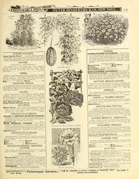 | Keywords: Everything for the garden (16668048469).jpg CLEOME PUNGENS <br> Giant Spider Plant A showy garden annual <br> producing curious heads of flowers of bright rose <br> color with lone astenna'-like stamens of easy culti- <br> vation blooming early until late 4to5 feet Pit <br> GOLD-LEAVED SWEET-SCENTED <br> The plants 12 to 18 inches high form compact <br> bushes with leaves of bright golden yellow; small <br> lilac-red flowers perfuming the air with their <br> sweetness ' '- <br> COBEA <br> Elegant rapid-growing climbers attaining a height <br> of 20 to 30 feet Particularly desirable for covering <br> arbors walls etc Can be grown in the conservatory <br> in winter Flowers large and well-shaped <br> Blue Ptt 10 I WMte <br> 10 <br> COCONEA ESTDICA <br> A remarkablv prettv annual climber luxuriant ivy- <br> like foliage small flowers followed by numerous fruits <br> 2 inches long which turn to brilliant scarlet spotted <br> with white 10 feet P t 10 <br> COLEUS <br> Plants with richlv-colored foliage of maroon green <br> crimson vellow etc For groups on lawns and <br> ribboning thev are indispensable and also valuable <br> for pot culture Although perennials they attain <br> perfection from seed the first season 1 to 3 feet <br> Pine Hybrids Mixed - - 19 <br> Large -leaved Pring-ed Coletis lSeepage86 2o <br> COLLINSIA <br> Mixed Colors <br> great beauty <br> 10 <br> Free summer-flowering annuals of <br> for mixed flower-gardens; great <br> variety of color ” white purple and crimson pre- <br> dominating 1 to 2 feet Pit S <br> CONVOLVULUS MINOR <br> DWAEP or BEDDING MORNING GZ OBIES <br> These grow only 1 lout high and 2 feet in diameter; <br> the flowers are freely borne throughout the summer; <br> if pleasant they remain open all day <br> Mixed Colors P '- <br> BUSH MOBNING GLOBIES onvolvijlus <br> Trici/Ior CiiuiiihcIus Com;iact bushy plants <br> about S inche s high and 18 inches in circumference <br> covered with beautiful Morning Glory flowers of all <br> colors and markings Splendid for beds or pot; <br> Mixed Colors <br> CONVOLVULUS MAJOR <br> – – MORNING GLORIES <br> Climbing plants ; unequaled for rapidity of growth <br> and profusion of bloom annuals attaining a height <br> of 0 to 50 feet <br> White Pkt 5 ' Striped 5 <br> Hose 5 ' Blue 5 <br> Blood-red ' Mixed Colors 5 <br> DOUBLE-FLOWERING MORNING <br> GLORIES <br> Very unique good-sized double flowers of a great <br> variety of shapes colors and markings Pkt 15 <br> COREOPSIS <br> Lanceohi ta Grn n dj flora <br> Harvest Moon Une of the finest hardy garden <br> plants grown forminglarge clumps 2 to 3 feet liigh <br> producing long-stemmed immense rich orange-yel- <br> low flowers ill profusion during the summer; un- <br> equaled for cutting ; grows anywhere It flowers the <br> first season from seed sown early Pkt 10 <br> Z J OBAI 0 See noveltiea pn/ e 8 5 25 <br> For annual Coreopsis see CaUiopsis <br> DOrBLE-FLOWKRlNG MORNIN'G GLORIES <br> COSMOS <br> X ABGE AUTTTMN-PLOWEBING The plants <br> TTT r feet high are one mass ot leathery green foli- <br> age gemmed with large single flowers of white pink <br> or crimson enlivening the garden long after more <br> tender flowers have succumbed to eariy frost i or <br> Wquets and vases this is one of the finest flowers <br> grown <br> LARGE-FLOWERING <br> Mixed Colors Pkt o I White Pearl o <br> Crimson - I Pi» vg <br> Tall Orange Goldenyellow f <br> New Giant Cosmos Seepages i <br> EARLY SUMMEK-PI OWEBING Se P \ll <br> Dwarf Yellow Cosmos A spreading dwarf plant <br> 12 to 15 inches high; the star-shaped flower 2 <br> inches across are of a rich golden yellow It begins <br> blooming when young and flowers continuou8l un- <br> til frost a perfect mound of gold ' – ' <br> COTTON MOSAIC-LEAVED <br> Identical with our Southern Cotton excepting the <br> foliage on most ot theplauts is lif« t f V «' ' tl ' <br> green white red and yellow Large yellow flowers <br> followed by pods ot white downy lint Pl t n <br> COWSLIP <br> The well-known favorite English Cowslip Prim u7a <br> vi'ri O hardv fiowering eariy in spring foot _ <br> Mixed Colors ' ' - <br> CREPIS Of HAWK'S BEARD <br> Prettv dwartannuals deservingaplace in every gar- <br> den of t-asy culture blooming in profusion; excellent <br> for cutting 1 toot <br> Mixed Colors i-kc a <br> CROTOLARIA RETUSA <br> Gohlfn Bu s/i r 'a or Florida Ruttlebox <br> A beautiful bushv garden annual with golden yellow <br> Sweet Pea-likeflow'ers often 40 blossoms on one spike <br> It blooms profusely throughout the summer and until <br> killed bv frost The seed-pods when shaken sound <br> like a child's rattle - <br> CUPHEA MINIATA COMPACT A <br> Bushv compact annual S inches high ; flowers scar- <br> let crimson purple etc throughout the season ; fine <br> for either bedding or pots i - -i <br> CYCLAMEN PERSIAN <br> Among the most beautiful winter and spring flower- <br> ing plan's tor the window and greenhouse Not only <br> are the flowere ot striking beauty but the foliage is al- <br> s highlv ornamental Tliecolors range throughshades <br> of pink 'crimson white spotted etc <br> Persicnm Pinest Mixed Colors i <br> For Giants and Vovflties in Cvrhinens see page 86 <br> CYPRESS VINE <br> UATURA CORNUCOPIA <br> Favorite summer-climbing annuals with feathery- <br> foliage and star-shaped flowei-s borne in clusters lo <br> to -JO feet _ - <br> W hite Pkt Ti Rose <br> aillt - ˘ I Mixed Colors 5 <br> DATURA <br> Strong-growing garden annuals 3 to 4 feet high <br> with large showy trumpet-shaped flowers <br> Cornucopia Stems purplish maroon The flow- <br> ers average 8 inches long by 5 inches across the <br> mouth the interiors being white the exteru» pur- <br> Ebony 'and Goid; ' Dark'purplisr The <br> hirge flowers are golden-yellow inside with shiny <br> puriilisli black exterior -- -r Z ' ; i <br> Double Golden Chlorantha d pi Large double <br> gdlilen-vellow flowers very fragrant <br> Pastuosa fl pl Double mixed colors a <br> H S '