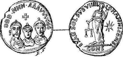 | Keywords: Exagium solidi.jpg en A struck exagium coin weight of the emperors Arcadius Honorius and Theodosius II legend surrounding the imperial busts DDD NNN AAA VVV GGG Dominorum nostrorum Augustorum and surrounding the Justitia figure EXAG SOL SVB V INL IOHANNI COM S L - CONS Exagium solidi sub viro inlustri Iohanni comiti sacrarum largitionum nl Een opvallend exagium muntgewicht van de keizers Arcadius Honorius en Theodosius II rond de keizerlijke bustes leest men DDD NNN AAA VVV GGG Dominorum nostrorum Augustorum rechts en rond de figuur van Justitia EXAG SOL SVB V INL IOHANNI COM S L - CONS Exagium solidi sub viro inlustri Iohanni comiti sacrarum largitionum http //dagr univ-tlse2 fr/sdx/dagr/feuilleter xsp tome 2 partie 1 numPage 880 nomEntree EXACTUS vue imagesass E Babelon art exagium in C Daremberg - E Saglio edd Le Dictionnaire des Antiquités Grecques et Romaines II 1 Parijs 1892 p 876 1892 PD-old Dictionnaire des antiquités grecques et romaines by Daremberg and Saglio Coin weights |