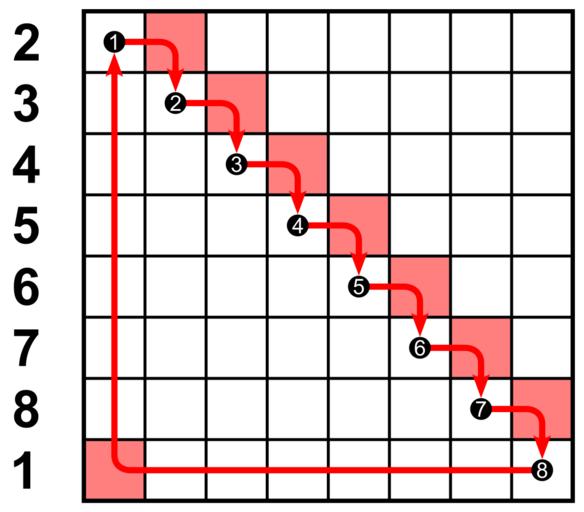 Keywords: Example permutation matrix; circular shift, right.svg Matrix of the last permutation in 300px own 2016-12-17 Watchduck cc-zero Array of permutations; example permutation matrix