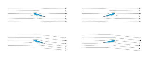 | Keywords: Examples of potential flow modelling.svg en Four examples of potential flow modeled around an airfoil On the top the flow is without circulation on the bottom circulation is added artificially until the stagnation point reaches a satisfactory position On the right flow is reversed and displays unphysical behavior illustrating that the reversibility of potential flow can lead to absurd cases 2015-02 own Olivier Cleynen other versions cc-zero SVG physics Uploaded with UploadWizard Potential flow Diagrams of fluid flow past airfoils |
