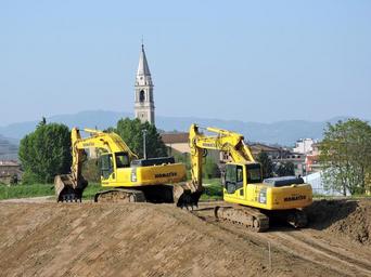 Keywords: excavator earthmoving revolving machinery levee tracked campanile