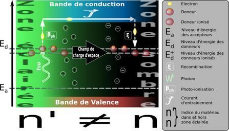 | Keywords: Exemple effet photorefractif fr.svg en Schematic representation of an example of a photorefractive mechanism for a given material In this paticular case electrons are the only charge carriers implicated in the mechanism fr Représentation schématique d'un exemple de mécanisme photoréfractif pour un matériau donné Dans ce cas précis les électrons sont les seuls porteurs de charge impliqués Own RUSO Alexandre 2008-07-02 Autre version du même auteur Schema effet photorefractif png en anglais Diagrams in French Photoelectric effect |