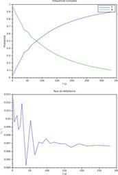 | Keywords: Exemple fiabilite F R lambda.svg fr Exemple d'étude de fiabilité tracé des fonctions de mortalité F de survie R et du taux de défaillance λ Obtenu avec Scilab modifié avec Inkscape en Example of reliability study plotting of the lifteime function F survival function R and hazard function λ Made with Scilab modified with Inkscape 2013-06-24 14 00 59 own Cdang cdang Scilab source <source lang scilab > // Ce script nécessite le module Atoms CASCI clear; /// // génération des données // // Données originales paramètres de la loi de Weibull // beta_forme 0 845; // eta_echelle 126; // Y linspace 0 1 30 // Y Y 2 -1 ; // t_orig floor idfweibull Y beta_forme eta_echelle '; t 2 5 9 13 17 22 27 39 39 39 52 64 64 76 86 97 108 121 135 151 169 191 215 245 282 332'; t_complet t ; 365 ; 365; N 28 Ncomplet size t_complet ; // nombre cumulé i 1; j 1 n0 1; nt size t ; while i < nt if t i <>t i+1 then dn j n0; n0 1; tt j t i ; j j + 1; else n0 n0 + 1; end i i+1; end dn j n0; tt j t i ; ndn j; n 1 dn 1 ; for i 2 ndn n i n i-1 + dn i ; end // Fréquences cumulées F n/ N+1 ; R 1-F; // loi de Fisher et intervalles de confiance indices 1 ndn; nu1inf 2 Ncomplet - indices +1 ; nu2inf 2 indices; for i indices fisherinf i idffisher 0 95 nu1inf i nu2inf i ; end Finf indices' / indices' + Ncomplet - indices' + 1 fisherinf ; nu1sup 2 indices + 1 ; nu2sup 2 Ncomplet - indices ; for i indices fishersup i idffisher 0 95 nu1sup i nu2sup i ; end Fsup indices' + 1 fishersup / indices' + Ncomplet - indices' + 1 fishersup ; Rsup 1-Finf; Rinf 1-Fsup; // taux de defaillance lambda for i 1 ndn-1 tauxdef i dn i+1 / N - n i / tt i + 1 - tt i ; end MTTF mean t_complet ; // // Tracé // scf 0 ; clf; subplot 2 1 1 plot tt F R xtitle Fréquences cumulées t j Probabilité legend F R subplot 2 1 2 plot tt 1 -1 tauxdef xtitle Taux de défaillance t j \lambda \mathrm j -1 scf 1 ; clf; subplot 2 1 1 plot tt Finf -- tt Fsup -- tt F ; xtitle Courbe de mortalité t j Fréquence cumulée legend min max F 2 a1 gca ; a1 data_bounds 0 0;365 1; a1 auto_scale off ; a1 tight_limits on ; subplot 2 1 2 plot tt Rinf -- tt Rsup -- tt R ; xtitle Courbe de survie fiabilité t j Fréquence cumulée legend min max R a2 gca ; a2 data_bounds 0 0;365 1; a2 auto_scale off ; a2 tight_limits on ; </source> cc-zero Uploaded with UploadWizard Reliability |