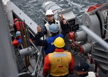 | Keywords: Exercise Foal Eagle 150405-N-AD372-450.jpg en 150405-N-AD372-450 WATERS SOUTH OF THE KOREAN PENINSULA April 5 2015 Hospital Corpsman 1st Class Jared Alexander performs a safety inspection on each Sailor aboard the mine countermeasure ship USS Chief MCM 14 prior to a mine sweeping training evolution Chief is currently participating in Exercise Foal Eagle 2015 a series of annual training events that are defense-oriented and designed to increase readiness and maintain stability on the Korean Peninsula while strengthening the Republic of Korea - U S alliance and promoting regional peace and stability in the Indo-Asia-Pacific region U S Navy photo by Mass Communication Specialist 1st Class Abraham Essenmacher/Released 2015-04-05 Petty Officer 2nd Class Abraham Essenmacher https //www dvidshub net/image/1863607 150405-N-AD372-450 2015-04-09 00 01 USS CHIEF WATERS SOUTH OF THE REPUBLIC OF KOREA AT SEA PD-USGov-Military-Navy USS Chief MCM-14 Images from DoD uploaded by Fæ Foal Eagle 2015 |