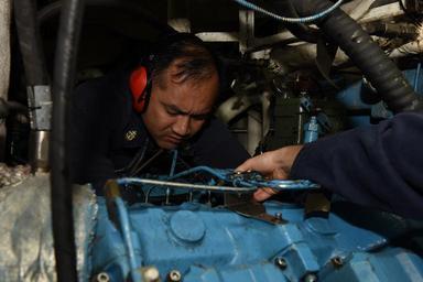 | Keywords: Exercise Foal Eagle 150406-N-AD372-074.jpg en 150406-N-AD372-074 WATERS SOUTH OF THE KOREAN PENINSULA April 6 2015 Chief Electrician's Mate Trung Nguyen works on checking the temperature reading device connections prior to starting one of the ships diesel engines aboard the mine counter measures ship USS Chief MCM 14 Chief is participating in Exercise Foal Eagle 2015 a series of annual training events that are defense-oriented and designed to increase readiness and maintain stability on the Korean Peninsula while strengthening the Republic of Korea-U S alliance and promoting regional peace and stability in the Indo-Asia-Pacific region U S Navy photo by Mass Communication Specialist 1st Class Abraham Essenmacher/Released 2015-04-06 Petty Officer 2nd Class Abraham Essenmacher https //www dvidshub net/image/1862204 150406-N-AD372-074 2015-04-08 03 04 USS CHIEF WATERS SOUTH OF THE KOREAN PENINSULA AT SEA PD-USGov-Military-Navy USS Chief MCM-14 Images from DoD uploaded by Fæ Foal Eagle 2015 |