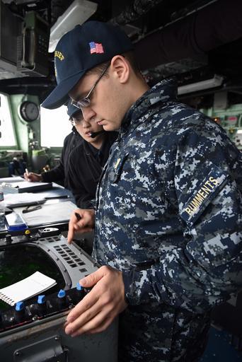 | Keywords: Exercise Foal Eagle 150406-N-AD372-100.jpg en 150406-N-AD372-100 WATERS SOUTH OF THE KOREAN PENINSULA April 6 2015 Ensign Andrew Rumments weapons officer aboard the mine countermeasure ship USS Chief MCM 14 tracks a contact with the SPS-55 radar on the bridge Chief is participating in Exercise Foal Eagle 2015 a series of annual training events that are defense-oriented and designed to increase readiness and maintain stability on the Korean Peninsula while strengthening the Republic of Korea-U S alliance and promoting regional peace and stability in the Indo-Asia-Pacific region U S Navy photo by Mass Communication Specialist 1st Class Abraham Essenmacher/Released 2015-04-06 Petty Officer 2nd Class Abraham Essenmacher https //www dvidshub net/image/1862206 150406-N-AD372-100 2015-04-08 03 04 USS CHIEF WATERS SOUTH OF THE KOREAN PENINSULA AT SEA PD-USGov-Military-Navy USS Chief MCM-14 Images from DoD uploaded by Fæ Foal Eagle 2015 |