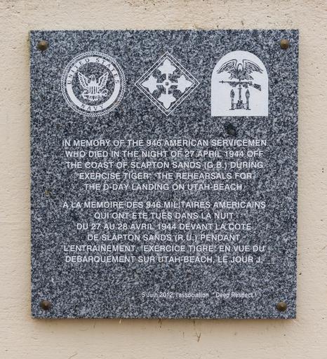 | Keywords: Exercise Tiger memorial Utah Beach, Manche, Normandy.jpg en Exercise Tiger memorial plaque Utah Beach Manche Normandy France Opération Tigre à Utah Beach Manche 2015-05-01 16 26 58 own Jebulon other versions 49 416186 -1 176068 cc-zero Uploaded with UploadWizard War memorials in Manche Plaques in Manche Utah Beach Slapton Sands Plaques referencing 1944 in France United States Navy Plaques referencing 2012 Valued images by Jebulon Bilingual plaques in France Quality images by Jebulon Exercise Tiger commemorative plaque Utah Beach Manche Normandy France 06 31 6 August 2015 UTC Exercise Tiger memorial Utah Beach Manche Normandy jpg QualityImage |