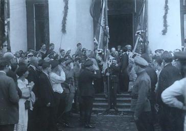 | Keywords: 20th century 20thcentury soviet union sovietunion boris souvarine borissouvarine petrograd saint-petersburg saintpetersburg russia uritsky tauride palace tauridepalace demonstration comintern third international thirdinternational iind congress iindcongress delegates komintern communist international communistinternational july 1920 july1920 iiird international iiirdinternational monochrome Boris Souvarine Papers - Soviet Russia Photos graduateinstitute.ch/home/research/library/archives/boris... Notes: The back of this picture holds the mention (both in Russian and French) "Exiting the Uritsky Palace". Uritsky Palace was the name given by the Bolsheviks to the Tauride Palace. After the February Revolution, the Provisional Government and the Petrograd Soviet were housed in this palace. On July 17th, 1920, the delegates to the IIIrd International gathered first at Smolny, then came to the Field of Mars, and to the Tauride Palace, where Lenin made a speech (cf. Alfred Rosmer's memoirs). Description: 1 photograph. Black and white ; 11 x 15.5 cm. Sources and further reading: Rosmer, Alfred. 1920. Moscou sous Lénine. Extract available online, "XIII: Smolny - Séance solennelle d'ouverture du IIe Congrès": www.marxists.org/francais/rosmer/works/msl/msl2013.htm Boris Souvarine Papers - Soviet Russia Photos graduateinstitute.ch/home/research/library/archives/boris... Notes: The back of this picture holds the mention (both in Russian and French) "Exiting the Uritsky Palace". Uritsky Palace was the name given by the Bolsheviks to the Tauride Palace. After the February Revolution, the Provisional Government and the Petrograd Soviet were housed in this palace. On July 17th, 1920, the delegates to the IIIrd International gathered first at Smolny, then came to the Field of Mars, and to the Tauride Palace, where Lenin made a speech (cf. Alfred Rosmer's memoirs). Description: 1 photograph. Black and white ; 11 x 15.5 cm. Sources and further reading: Rosmer, Alfred. 1920. Moscou sous Lénine. Extract available online, "XIII: Smolny - Séance solennelle d'ouverture du IIe Congrès": www.marxists.org/francais/rosmer/works/msl/msl2013.htm |