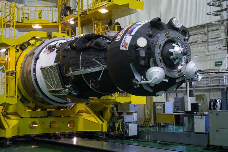 MAKE A MEME View Large Image The Soyuz MS-02 spacecraft is seen after being rotated into a horizontal position in preparation for encapsulation in its fairing on Thursday, Tuesday, Oct. 11, 2016 at the Baikonur Cosmodrome in Kazakhstan. Expedition 49 flight engineer ...
