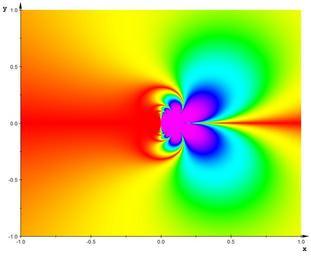| Keywords: Exponential Function (Abs Imag Part at Infinity) Density.png Diagram of the absolute value of the real part of the exponential function in the complex plane as the operand approaches infinity The plot is given by <math>z \bigg \operatorname Im \left \exp \left \frac 1 x + i y \right \right \bigg </math> The colour code is based on the arctan function and therefore emphasises changes at small values more than changes at large values Green is smallest then blue red and yellow largest Own drawing Plotted in MuPAD code given below 2007-04-20 Inductiveload See Exponential function for related graphics MuPAD Code <pre> f abs Im exp 1/ x+I y ylimit 1 xlimit 1 mesh 1000 //resolution of density plot a 1 //change this to adjust the colour band drop-of rate fmin 0 //minimum value of colour function i e the one with arctan in it fmax 1 //maximum value of colour function range 1 //for brevity colour proc c begin if c < fmin then return 1 0 0 //this term may not be needed but it means we can deal with slightly under-limit values elif c < fmin + 1 range/6 then return 1 abs sin c-fmin PI/2 / range/6 a 0 elif c < fmin + 2 range/6 then return abs sin c-fmin PI/2 / range/6 a 1 0 elif c < fmin + 3 range/6 then return 0 1 abs -sin c-fmin PI/2 / range/6 a elif c < fmin + 4 range/6 then return 0 abs -sin c-fmin PI/2 / range/6 a 1 elif c < fmin + 5 range/6 then return abs sin c-fmin PI/2 / range/6 a 0 1 elif c < fmin + 6 range/6 then return 1 0 abs sin c-fmin PI/2 / range/6 a else return 1 0 1 end_if end_proc colfunc x y z -> colour arctan z/2 5 0001/6 / 0 5 PI //the factor of 5/6 prevents the spectrum from wrapping // by precisely one colour transition m->r //The extra 0 00001 is to prevent an error when evaluating the 5th elif clause //No idea why but it must be sometihng to do with there being a 5/6 in there cplot plot Density f x -xlimit xlimit y -ylimit ylimit AntiAliased TRUE Mesh mesh mesh AxesTitleFont Courier New Bold 14 TicksLabelFont Arial 10 FillColorFunction colfunc YTicksDistance 0 5 XTicksDistance 0 5 time plot cplot Axes Frame Width 8 5 unit inch Height 7 unit inch sec/1000 0 </pre> Complex exponential function šÂ« Image ˜<sub><tt><tt> ¹ ¹<code>··°<noinclude><tt><tt> ¹<tt>«« <sub> REDIRECT <noinclude></noinclude></sub> »»</tt> º</tt></tt></noinclude></code> º º</tt></tt></sub> ™Â» ˜ |