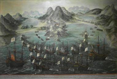 | Keywords: ExpulsiónDeLosHolandesesDeLaIslaDeSanMartín16330701-2.jpg El cuadro representa la expulsión de los soldados holandeses de la isla de San Martín Islas de Barlovento 1 de julio de 1633 Siglo XVII oil canvas Size cm Institution Museo Naval de Madrid object history exhibition history credit line accession number own cc-by-sa-4 0 PD-old-100 17th-century paintings in the Naval Museum of Madrid Juan de la Corte 1630s naval battles Uploaded with UploadWizard | ||||