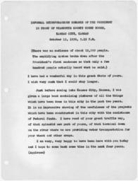 | Keywords: Extemporaneous remarks in front of Wyandotte County Court House, Kansas City, KS. - NARA - 197637.tif Scope and content General notes 197637 Local identifier President 1933-1945 Roosevelt 1933 - 1945 NARA-Author Roosevelt Franklin D Franklin Delano 1882-1945 Author 1301590 <br /> Franklin D Roosevelt Library NLFDR 4079 Albany Post Road Hyde Park NY 12538-1999 1936-10-13 Record group Collection FDR-PPF Papers as President President's Personal File 1933 - 1945 Record group ARC 1185 Speeches of President Franklin D Roosevelt compiled 1933 - 1945 Series ARC 197300 File unit First Carbon Files 1933 - 1945 File unit ARC 197301 Variant control numbers NAIL Control Number NLR-PPF-1820-1STCARBON-SC89 yes Other versions <gallery> File Extemporaneous_remarks_in_front_of_Wyandotte_County_Court_House _Kansas_City _KS _-_NARA_-_197637 tif tif File Extemporaneous_remarks_in_front_of_Wyandotte_County_Court_House _Kansas_City _KS _-_NARA_-_197637 jpg jpg </gallery> NARA-cooperation PD-USGov Speeches by Franklin Delano Roosevelt Wyandotte County Courthouse Kansas City Kansas Kansas in the 1930s October 1936 1936 in the United States NARA TIF images with categorized JPGs |