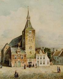 Keywords: Exterieur Andreaskerk Hattem 1.png en detail of a picture of the centre of the Dutch city Hattem nl detail van een penseeltekening van het centrum van de stad Hattem Gelders Archief anonymous 1870 PD-old Grote of Andreaskerk