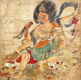 | Keywords: Extermination of Evil Tenkeisei crop.jpg 27 Artist God of Heavenly Punishment 天刑星 てんけいせい Dieu de Punition Céleste century 12 Color on paper cm 26 0 39 2 Nara National Museum Nara Japan Part of the set of five hanging scrolls Extermination of Evil depicting benevolent deities who expel demons of plague This scroll was originally part of a handscroll known as the second edition of the Masuda family Hell Scroll before being cut into sections after World War II The text on the scroll explains the acts of the god in exterminating evil The God of Heavenly Punishment is shown consuming the ox-headed deity Gozu Tennō the god of pestilence The set of five scrolls has been designated as National Treasure of Japan in the category paintings http //www emuseum jp/cgi/pkihon cgi SyoID 1 ID w003 SubID s000 Tokyo National Museum Emuseum 1106 painting 205 Other versions 150px assessments 1 Exterminationf of Evil Tenkeisei PD-old-100 derivative works Extermination of Evil collage jpg Extermination of Evil |