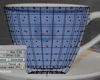 Keywords: Extrude1.png cup's mesh after extruding for the handle Own 2009-03-12 BlenderFoundation free screenshot GPL Blender 3D viewports