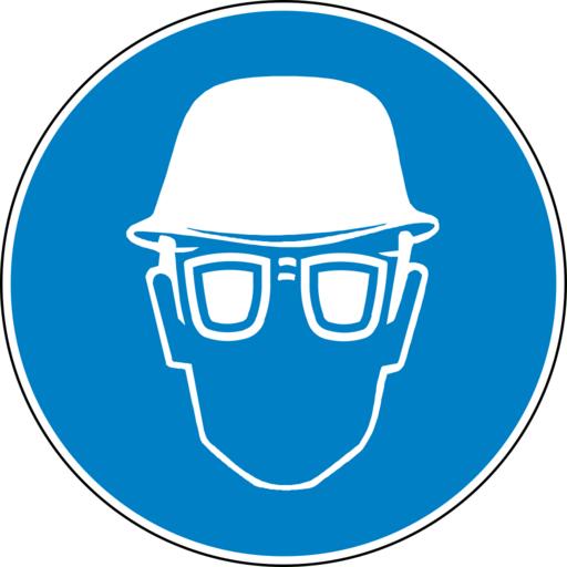 Keywords: eye protection head protection safety glasses goggles helmet blue sign symbol icon