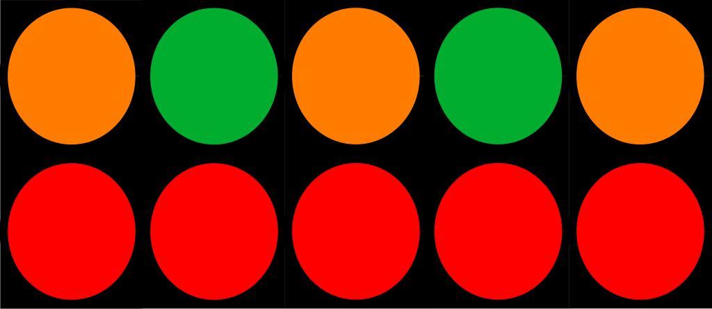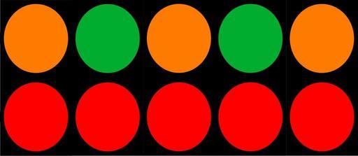 | Keywords: F1StartLights.svg Formula One Start Lights as seen by television viewers Different to what drivers see Own 2006-08-25 Alex Jones All Rights Released en Five minutes before the formation lap begins all five red lights will illuminate After one minute a light will extinguish After another minute a second light will extinguish This continues until all lights are extinguished and the two green lights will illuminate and the formation lap commences After the formation lap the red lights will light up one at a time before a short pause and then all of them going out indicating the start of the race In the event of an aborted start all five red lights will light up and the three orange lights will flash Then both red and orange lights are extinguished and the green lights illuminate to indicate another formation lap whilst the problem is dealt with User Alexj2002/InkscapePD Motorsport lights |
