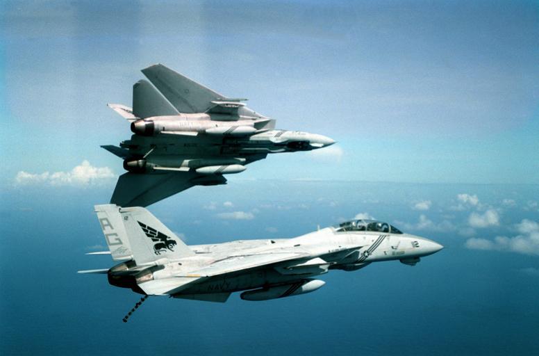 | Keywords: F-14B VF-143 5.JPEG en Right rear view of two F-14B Tomcat aircraft of Fighter Squadron 143 VF-143 with tailhooks down in preparation for landing The outboard aircraft has already commenced its breaking turn for the landing pattern 1992-09-01 www DefenseImagery mil US Navy PD-USGov Uploaded with UploadWizard Aircraft formation flight of F-14B Tomcat Aerial photographs of F-14 Tomcat in flight Fighter Squadron 143 United States Navy | ||||