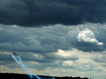 Keywords: f 16 lockheed martin fighter aircraft fighter jet cloud clouds farnborough london white dramatic grey dark schwärz strong to pull out contrail afterburner maneuver airshow