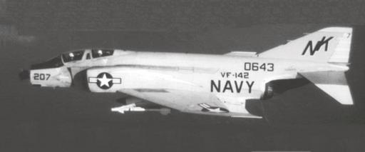 | Keywords: F-4B VF-142 damaged Vietnam 1964-65.jpg en A U S Navy McDonnell F-4B-14-MC Phantom II BuNo 150643 of fighter squadron VF-142 Ghostriders VF-142 was assigned to Attack Carrier Air Wing 14 CVW-14 aboard the aircraft carrier USS Constellation CVA-64 from 5 May 1964 to 1 February 1965 CVW-14 flew the first strikes of the Vietman War On a photo reconnaissance mission to the Thanh Hoa Bridge the F-4B 150643 of the fighter cover call sign Dakota 207 pilot Fred Ferrazzano was hit by a 57 mm shell at an altitude of 150 m This hit destroyed the nose cone parts of it being ingested by both J-79 engines and as was later found out the main spar had been twisted with the shock of the hit The pilot was able to recover aboard the USS Ranger CVA-61 Due to the damage the plane was later broken up for spare parts at Subic Bay Philippines Note that the aircraft is carrying an AIM-9B Sidewinder missile US Navy employee http //www highironillustrations com/rogues/fred_ferazzano html Commander Fred Ferrazzano USN 1964/65 PD-USGov-Military-Navy F-4B Phantom II Aerial photographs of F-4 Phantom II in flight Fighter Squadron 142 United States Navy AIM-9 Sidewinder |