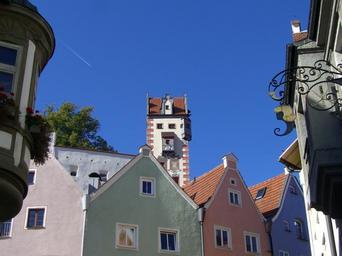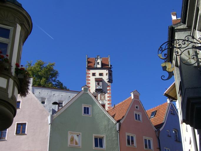 Keywords: füssen row of houses old town tower high castle sky blue