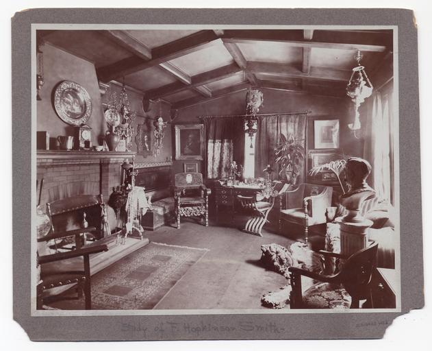 | Keywords: smithsonian institution smithsonianinstitution author f. hopkinson smith authorfhopkinsonsmith black and white blackandwhite study historical room carpet oriental rug orientalrug chair clock fireplace bust curtains win f hopkinson smith study 1900 fhopkinsonsmithstudy1900 archives of american art archivesofamericanart indoor black and white Description: F. Hopkinson Smith's study. Identification on front (handwritten): Study of F. Hopkinson Smith. Smith, Francis Hopkinson, 1838-1915 Creator/Photographer: Unidentified photographer Medium: Black and white photographic print Dimensions: 20 cm x 24 cm Date: c. 1900 Persistent URL: www.aaa.si.edu/collections/images/detail/f-hopkinson-smit... Repository: Archives of American Art Collection: Charles Scribner's Sons Art Reference Department Records, c. 1865-1957 Accession number: aaa_charscrs_4384 Description: F. Hopkinson Smith's study. Identification on front (handwritten): Study of F. Hopkinson Smith. Smith, Francis Hopkinson, 1838-1915 Creator/Photographer: Unidentified photographer Medium: Black and white photographic print Dimensions: 20 cm x 24 cm Date: c. 1900 Persistent URL: www.aaa.si.edu/collections/images/detail/f-hopkinson-smit... Repository: Archives of American Art Collection: Charles Scribner's Sons Art Reference Department Records, c. 1865-1957 Accession number: aaa_charscrs_4384 |