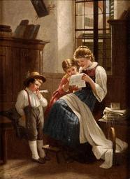 | Keywords: F Lucca Ein interessanter Brief.jpg Ein interessanter Brief Signiert Öl auf Holz 31 5 x 23 5 cm http //www duesseldorfer-auktionshaus de/ century 19 F Lucca 19 Jh PD-Art Images from Düsseldorfer Auktionshaus Letters in art Tracht in art Paintings of sitting women reading indoors |