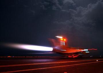 | Keywords: FA-18-Afterburners.jpg An F/A-18A Hornet assigned to the Silver Eagles of Marine Fighter Attack Squadron One One Five VMFA-115 lights its afterburners to maintain full military power immediately following a night arrested landing aboard the Nimitz-class aircraft carrier USS Harry S Truman CVN 75 http //www navy mil/view_image asp id 19230 2004-11-26 U S Navy photo by Photographer ™s Mate Airman Kristopher Wilson PD-USGov-Military-Navy F/A-18A Hornet on flight decks Aboard USS Harry S Truman CVN-75 Aircraft using afterburning Taken with Nikon D1X Military activities at night F/A-18 Hornet aircraft carrier landings |