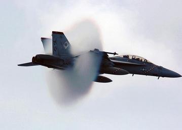 | Keywords: FA-18 Super Hornet VFA-102.jpg Somewhere over the Philippine Sea a US Navy USN F/A-18F Super Hornet Strike Fighter Squadron 102 VFA-102 Diamondbacks Naval Air Station NAS Atsugi Japan JPN breaks the sound barrier during a fly-by over the aircraft carrier USS KITTY HAWK CV 63 not shown Shot 27 Jul 2005 PD-USN Strike Fighter Squadron 102 United States Navy F/A-18F Super Hornet with condensation clouds from shockwaves | ||||