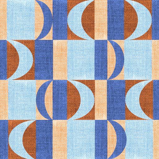 Keywords: fabric texture textile decorative design geometric hues shapes bright blue pale light peach brown half-moon slices pattern creative abstract retro modern classic color style decoration template swirl backdrop block cube futuristic wave line background material cloth crescent |