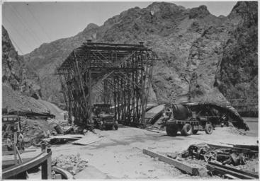 | Keywords: "Fabricating steel-frame carriages for top arch concrete forms near diversion tunnel intakes on Nevada side. Note... - NARA - 293672.jpg Scope and content Photograph from Volume Two of a series of photo albums documenting the construction of Hoover Dam Boulder City Nevada General notes 293672 Local identifier Department of the Interior Bureau of Reclamation Engineering and Research Center 05/18/1981 - 03/04/1988 NARA's Rocky Mountain Region Denver NRGA Building 48 Denver Federal Center West 6th Avenue and Kipling Street Denver CO 80225-0307 1932-06-02 Record group Record Group 115 Records of the Bureau of Reclamation 1889 - 2008 Record group ARC 444 Photograph albums compiled 1903 - 1972 Series ARC 293611 File unit File unit ARC Variant control numbers NAIL Control Number NRG-115-CONSTPHO85006-BC21231 Other versions <gallery> File Fabricating_steel-frame_carriages_for_top_arch_concrete_forms_near_diversion_tunnel_intakes_on_Nevada_side _Note _-_NARA_-_293672 tif tif File Fabricating_steel-frame_carriages_for_top_arch_concrete_forms_near_diversion_tunnel_intakes_on_Nevada_side _Note _-_NARA_-_293672 jpg jpg </gallery> NARA-cooperation PD-USGov Hoover Dam construction equipment 1932 in the United States |