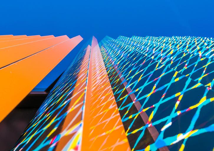 Keywords: facade architecture panel ventilation colorful grid home view modern