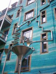 Keywords: facade facade art rain gutters rain water game art architecture blue the elements of justice dresden neustadt kunsthof passage