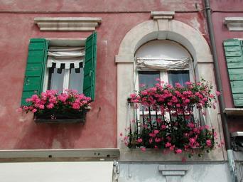 Keywords: facade flowers building flower boxes window