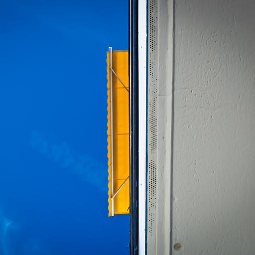 Keywords: facade home downtown building blinds sun protection balcony yellow