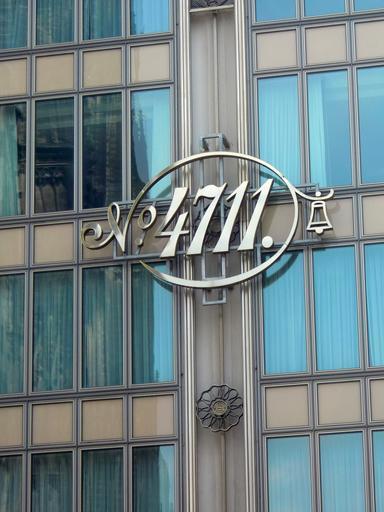 Keywords: facade window glass building architecture advertising perfume 4711 reflection mirroring company logo