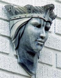Keywords: face brick wall statue queen