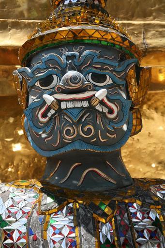 Keywords: face blue teeth demon gold decorated patterned religious spirit scary