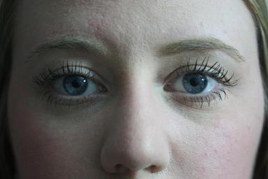 Keywords: face eyes eyelashes lashes mascara blue eyes blonde young woman girl stare look watch soul curious