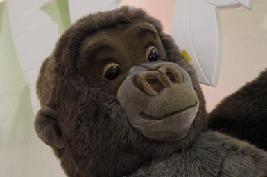 Keywords: face gorilla monkey teddy bear steiff soft toy plush monkey plush gorilla expression mimic ape mammal animal silvery grey child replica imitation view head toys fake