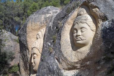 Keywords: faces sculpture stone buddha face carving portrait women museum lips drawing mount pine sky nose mouth