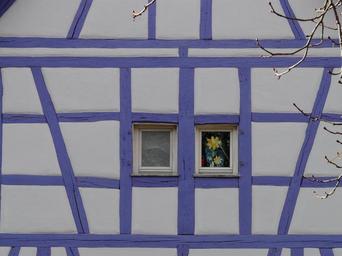 Keywords: fachwerkhaus truss building architecture wood window bar purple home facade entablature