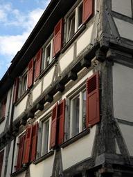 Keywords: fachwerkhaus truss home window shutter red clean neat building wall hauswand germany