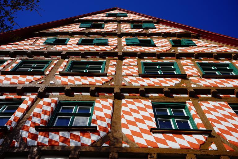 Keywords: fachwerkhaus truss red white red and white checkered ulm fishermen's quarter city old town building facade architecture