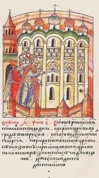 | Keywords: Facial Chronicle - b.05, p.309 - S.George church (Yuryev-Polsky).png ru Летописный лицевой свод том 5 ст 309 В лето 6742 Благове ный князь Святослав Всеволдовичь све ши це ковь во г аде во Ю ьеве святаго великомученика Гео гия и ук аси паче иных це квей бе бо из внут и около всея це кви по каменю езаны святые чудно вельми иже есть и до сего дне стоит 16th century http //www sterligoff ru/books/Rus_Kniga 205 pdf anonymous other versions PD-Art Uploaded with UploadWizard Saint George Church Yuryev-Polsky Facial Chronicle v 4 - Golytsinskiy tom 1114-1247; 1425-1472 |