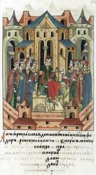 | Keywords: Facial Chronicle - b.07, p.039 - Fedor Konstantinovich of Yaroslavl enthroned.jpg ЛИЦЕВОЙ ЛЕТОПИС ЫЙ СВОД А в Я ославле сел на княжение князь Федо Ростиславич внук стиславов п авнук Давыдов http //www akteon-elib ru/LITsIeVOI-LIeTOPISNYI-SVOD-Russkaya-letopisnaya-istoriya-Kniga-7/ 2 century 16 anonymous PD-Old Facial Chronicle v 6 - Ostermanovskiy 1-y tom 1254-1378 Files uploaded by Shakko from various sources 1294 in Russia | ||||