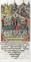 | Keywords: Facial Chronicle - b.07, p.217 - Wedding of Konstantin Mikhailovich of Tver.jpg ЛИЦЕВОЙ ЛЕТОПИС ЫЙ СВОД В том же году женился князь Константин ихайлович Тве ской внук Я ославов п авнук Я ославов п ап авнук Всеволодов п еп ап авнук Ю ия Долго укого и венчан был в це кви святого Феодо а в Кост оме http //www akteon-elib ru/LITsIeVOI-LIeTOPISNYI-SVOD-Russkaya-letopisnaya-istoriya-Kniga-7/ 2 century 16 anonymous PD-Old Facial Chronicle v 6 - Ostermanovskiy 1-y tom 1254-1378 Files uploaded by Shakko from various sources 1320 in Russia Konstantin Mikhailovich of Tver Sophia Yuryevna of Moscow Weddings in medieval manuscripts Russia |